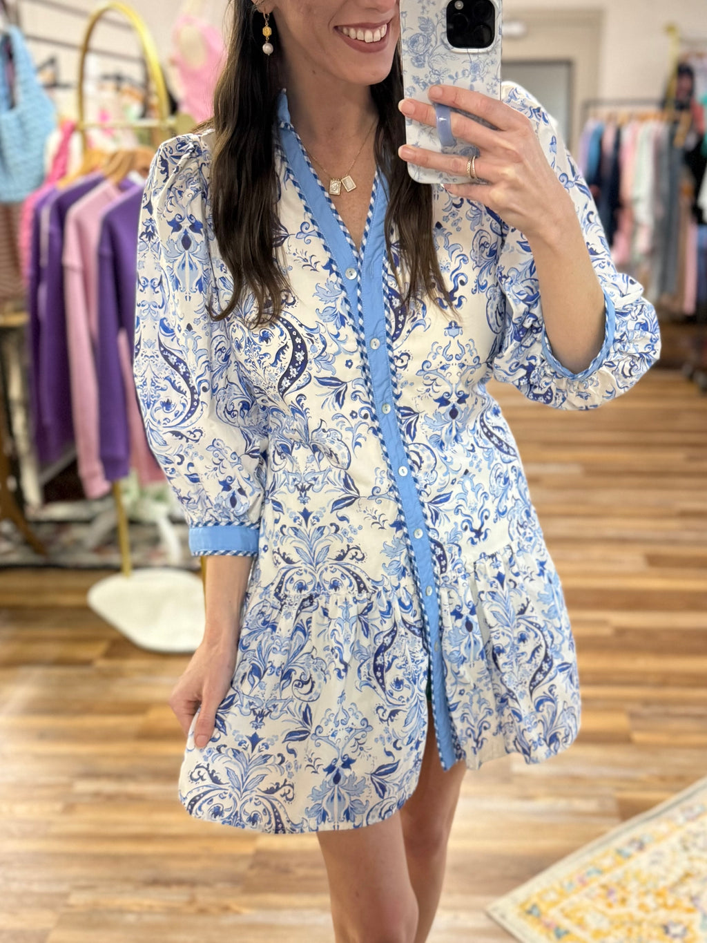 Paisley Print Puff Sleeve Dress