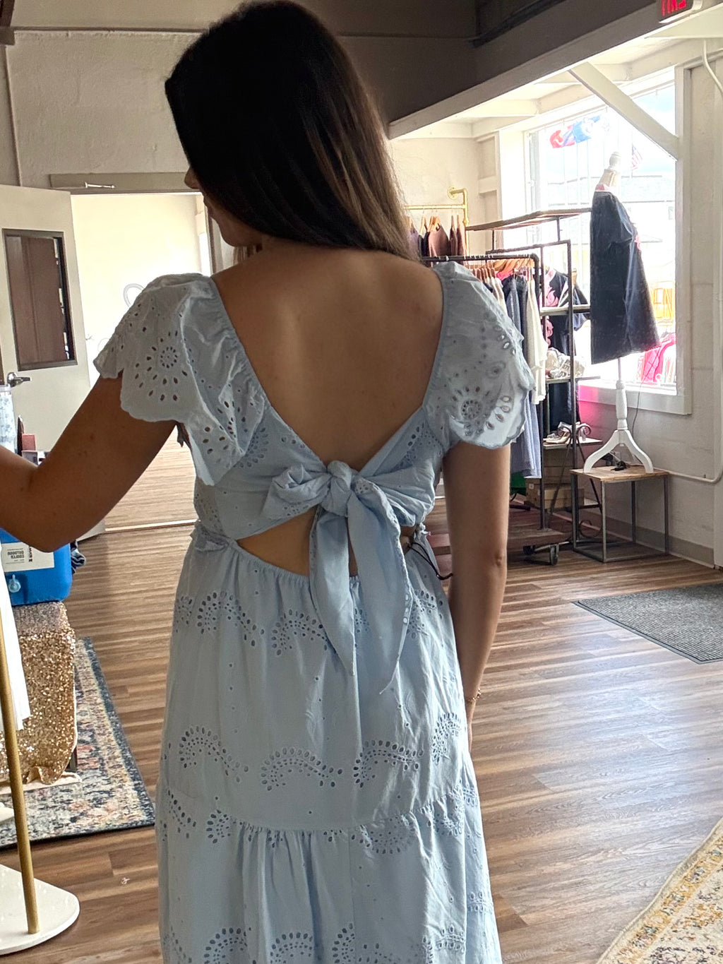 Baby Blue Eyelet Midi Dress