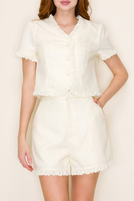 Floral Eyelet Pattern Scallop Lace Trim Midi Dress