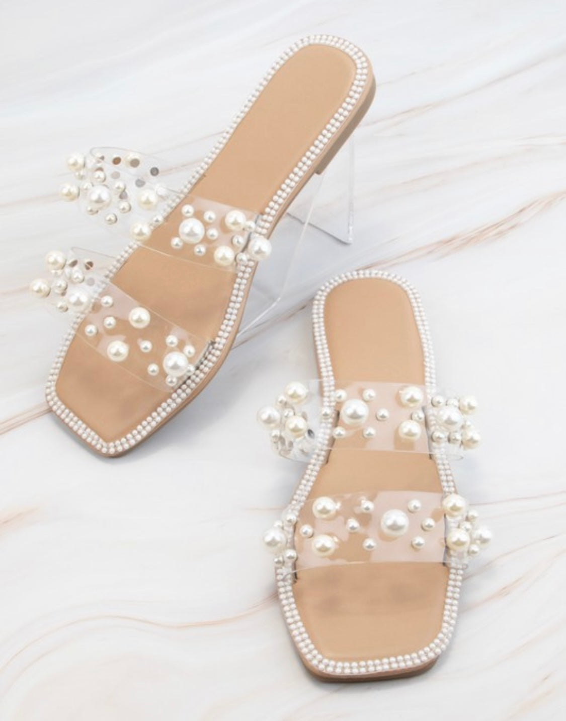 Clear Strap Pearl Slides