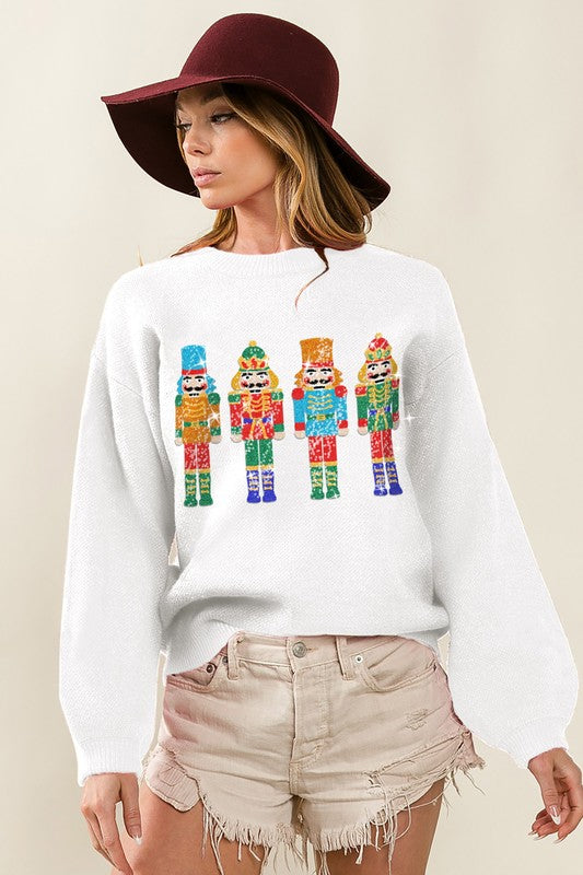 SEQUIN NUTCRACKERS EMBROIDERY CHRISTMAS SWEATER PULLOVER