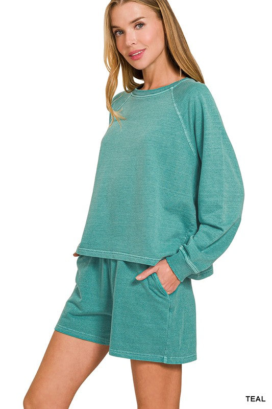 FRENCH TERRY PIGMENT DYE+ENZYME WASH PULLOVER & SHORT SET
