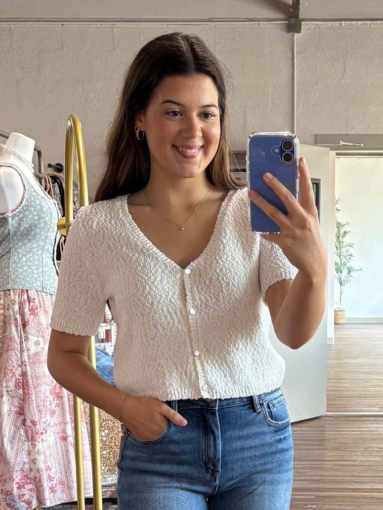 Throw on this vibrant V-neck cardigan and instantly level up your casual style game. The textured knit and short sleeves make it perfect for layering, while the front button closure keeps things effortlessly put-together. Pair it with your favorite denim skirt for that coveted chic-and-comfy vibe that works everywhere.
