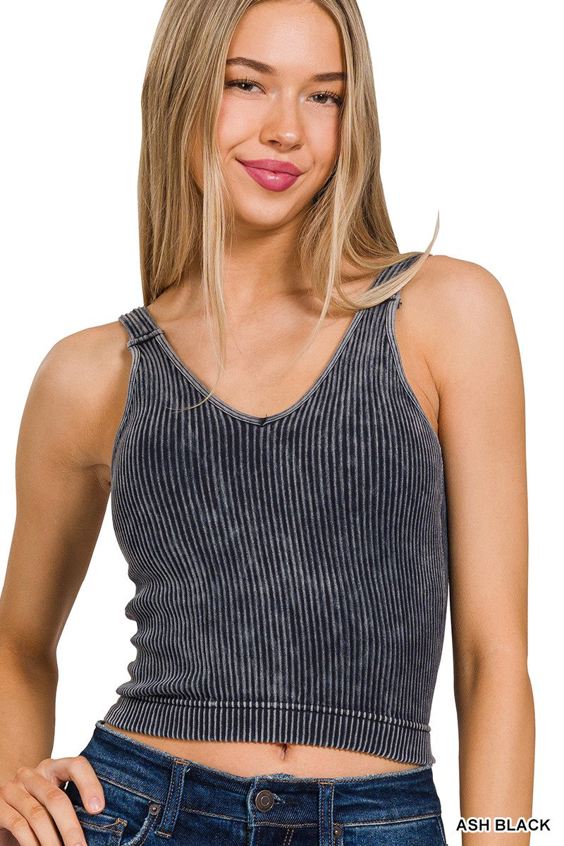 Effortlessly chic and oh-so-comfy, this washed ribbed tank features a flattering V-neck and seamless construction that moves with you. The removable padded bra keeps you supported without the fuss, while the cropped silhouette hits just right. Handcrafted vibes mean each piece is wonderfully one-of-a-kind—color and finish variations are part of the charm!