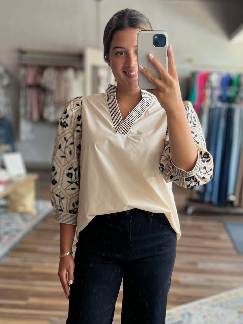 Sophie's Ribbed Boat Neck 3/4 Sleeve Top