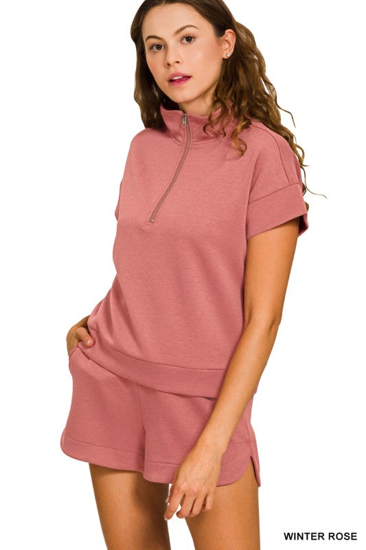 SCUBA HIGH NECK HALF ZIP TOP & DOLPHIN SHORTS SET