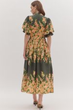 This floral print midi dress brings playful charm with its short puff sleeves and flirty ruffled collar. A button-front closure and self-tie waist belt let you adjust the fit just right, while side pockets keep essentials close. Lightweight and lined, its woven fabric feels comfortable and never sheer—a perfect pick for sunny days and casual outings.